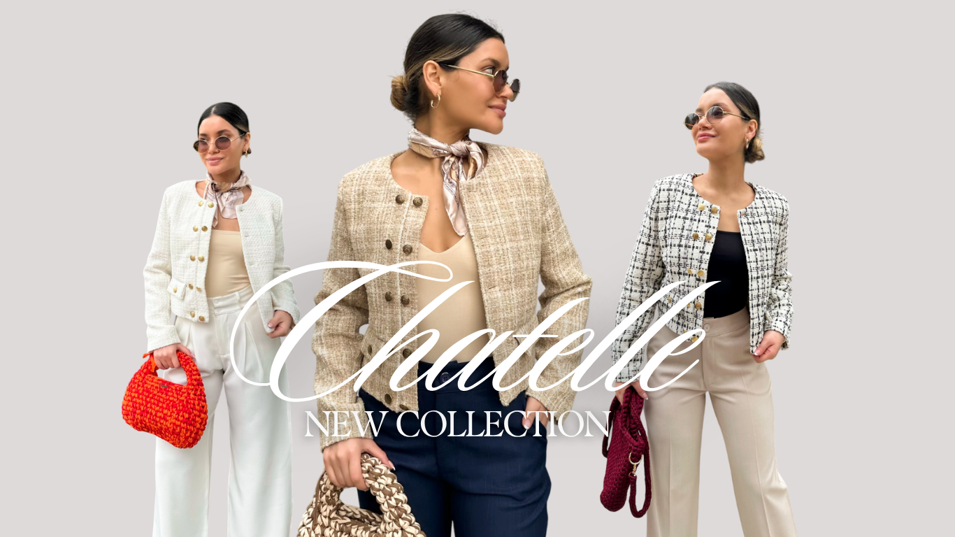Chatelle combina tejidos icónicos como el buclé, el tweed, acabados dorados y tonos neutros que elevan cualquier look.