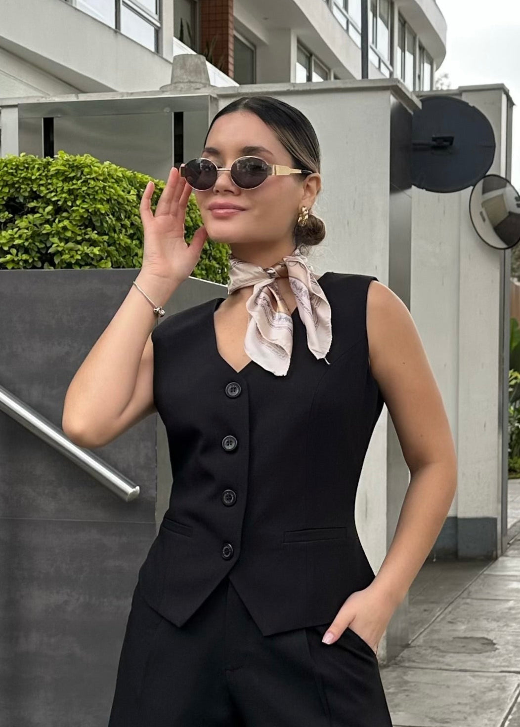 Puedes combinarlo con camisas, blusas o incluso llevarlo solo como top para un look más moderno. Funciona tanto para el trabajo como para una salida casual.